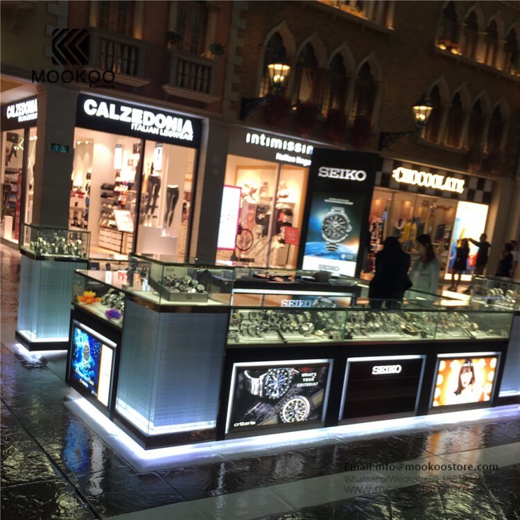 Този павилион за часовници е с размери 3 на 3 метра, което се равнява на 10 фута на 10 фута. ако се интересувате от създаване на витрина на simialr мол, можете да се свържете с мен.